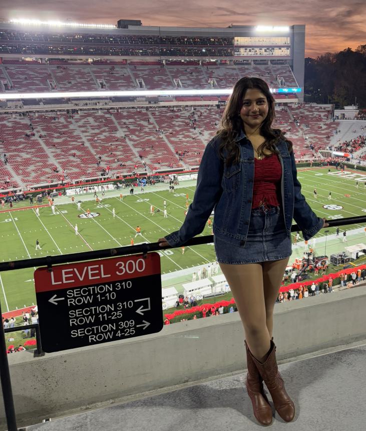 Image: A fourth-year History and English major, Priya Storey is applying for the final year of the Double Dawg program in graduate school to complete her master’s degree in history next year. She noted the numerous and diverse academic opportunities available at UGA are what first caught her attention when looking at prospective colleges. She’s taken advantage of many of those opportunities as a double major (History and English) and studying abroad. She is currently pre-law, and explains English and History both work together to build a strong foundation for studying law. Studying abroad (twice) in Oxford and Paris also inspired her research area and motivated a real passion for history. Thanks to the Double Dawg program, I can develop graduate-level skills and apply them to my undergraduate studies. With this seamless transition, I can pursue a rigorous study plan while also being financially smart. Priya loved her study away program at UGA Oxford and in Paris. She noted that her time at Oxford inspired her thesis since she took part in local research for a class on the Protestant Reformation. By doing very localized research, I was inspired to research the wider extent and impact the reformation had on the English peoples. She is currently researching the extent of the role the print revolution played in the politics and deployment of the Protestant Reformation in Tudor England. Somehow Priya has also found time for other passions, such as her sorority Delta Gamma, where she has made lifelong friends. Our philanthropy is to help those who are visually impaired or blind while also spreading awareness of the issues this community faces. I have a blind family member, and I love seeing the positive impact we have on the Athens community, but also nationally. Constantly surrounded by the arts; from dancing jazz and ballroom to playing the flute in the UGA Symphonic Band, Priya has a passion for the arts and is a member of the Ballroom Performance Group here on campus. She loves having a place to express her love for dancing and performing with others. “We are always learning new dance styles and choreographies while also learning from each other, so it’s an amazing community of students from all backgrounds”, she commented. (Pictured 4th from left - Priya Storey, with the UGA ballroom dance group). Priya was happy to discuss her advocacy and journey as a Type One diabetic, and it’s a telling fact on the kind of person she is that her journey is more about helping others, then about what she has gone through; I was diagnosed with Type One Diabetes when I was 9. My brother had been diagnosed a few years before me, so I wasn’t completely new to the diagnosis. I became an ambassador for Breakthrough T1D, an organization dedicated to fundraising for a cure for Type One Diabetes. I was an ambassador for eleven years, and I loved my time at the foundation. I even had the opportunity to go to Congress to advocate for a bill to reduce insulin costs in a program called Children’s Congress. I love spreading awareness for Type One Diabetes and hope my story can positively affect other diabetics and show that diabetes does not have to hinder you, but instead, empower you to make an impact in other people’s. In her free time, you will most likely find Priya at Emmanuel’s Episcopal Church, Cali n’ Tito’s (the best Peruvian food in Georgia), or at Duke’s & Dottie’s, testing her knowledge of line dances!