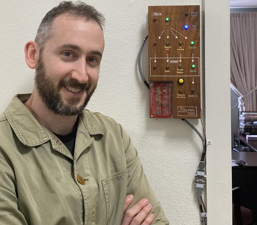Image: Assistant Professor Joseph (Joey) Kellner has made a number of key accomplishments in 2025, the result of years of scholarship and research. His first book was published in June, and he received the Michael F. Adams Early Career Scholar Award, established by the University of Georgia Research Foundation to recognize outstanding accomplishments and evidence of potential future success in scholarship, creative work or research by an early career faculty member in the arts and humanities. Kellner is gratified for the departmental support he received for the award. The history department has been very active in supporting my research, from helping me seek out and win short-term grants through my nomination for the Early Career Scholar Award. I appreciate in particular how much the department supports faculty in fields that are not a traditional focus of the department. Published through Cornell University Press, his new book The Spirit of Socialism: Culture and Belief at the Soviet Collapse (Cornell University Press, 2025) discusses what Kellner calls, the “seeking phenomenon” of the Soviet collapse and transition in the early 1990s. The book is organized into four chapters with a specific belief at the center; the Astrologers, the Hare Krishnas, the apocalyptic, Vessarion sect and the New Chronology of world history created by mathematician Anatoly Fomenko. This growth of spiritual beliefs in eclectic and non-traditional beliefs, Kellner argues, is reflective of a large cultural transformation in reckoning with a world with no familiar reference points. The speed at which their lives changed was very rapid so the stars served as both a map and a compass for the disoriented citizens in the 1990s. Kellner was drawn naturally to the study of cultural history and its connections with spirituality, having had a number of friends who had grown up in deeply religious worlds. He felt that the connections between history and spirituality have always existed. He spent the past 15 years off and on writing on this topic, originally in the form of their Ph.D. dissertation at the University of California: Berkeley. He feels fortunate to have had that time and space to finish it, explaining “hopefully the book reflects my absolute hardest effort and best attempt to grapple with the subject.”. After the dissertation he took 2 years completely off while lecturing at Berkeley then looked at it with fresh eyes. He especially loved researching with the Vessarion sect in Siberia, living in people’s houses and doing ethnography. He had a standalone digital camera and would walk around at night in the deep snow to capture scenes. Joey feels fortunate to have spent time in the serene wilds of Russia, but for now, his current research is keeping him closer to home. He explained that “although research in Russia is now impossible on account of Russia’s invasion of Ukraine, it has been easy to develop new projects, and UGA has given me the time and space to do that—something necessary for my entire field in this moment, but not always guaranteed.” Currently, Kellner is co-editing a primary source reader on settler-colonialism in the history of the Russian Empire Red Against Empire. The volume translates the work of 1920s Soviet historians who were trying to revise the history of the Russian empire from a nationalist story to one that situates the Russian empire in settler-colonial studies. Many of the writers are executed and their work hidden by Stalin, leaving them forgotten in contemporary Russian studies. The co-edited work includes commentary by current experts on settler-colonial and post-colonial studies. If you want to know more about his current work, you can attend tea chats in the morning in his history office after checking in through the Joey-Matic system. Students and colleagues love the Joey-Matic device located outside Dr. Kellner’s office that will let you know if he’s available to chat, in a meeting, and even if the tea kettle is on! By Erleen Ellis